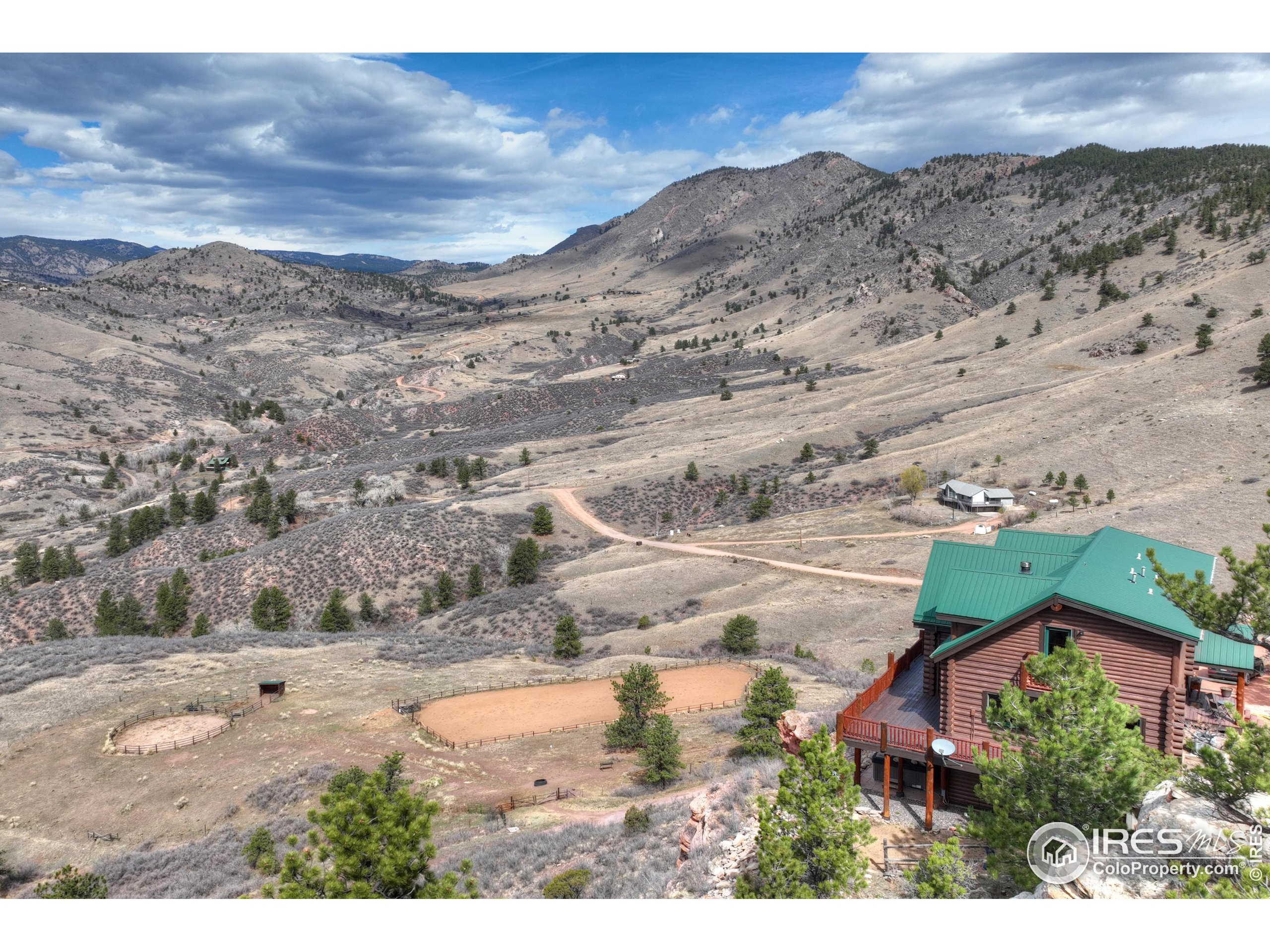 Many are drawn to Colorado for its sweeping mountain vistas and endless opportunities to enjoy the outdoors-this remarkable 40-acre property delivers both in abundance. Perched in an ideal location, this custom full-log 3-bedroom home captures some of the most jaw-dropping views in the region. From the pastoral valley of Spring Gulch to the surrounding foothills and the snow-capped peaks of Longs Peak and Mount Meeker, the scenery here is nothing short of extraordinary.The home itself is a true Colorado retreat-warm, welcoming, and rich in mountain character. Inside, you'll find a stunning full-log interior, dramatic stone fireplace crafted from rocks sourced on the property, soaring ceilings, and expansive windows that frame the ever-changing views. It feels like the kind of lodge you'd escape to on vacation-but it's home.Equestrian-ready, the property features fenced pastures, two loafing sheds, a 3,000-square-foot outdoor arena, and a round pen, offering ample space for your horses to roam. The land is gently rolling and highly usable, with a year-round spring adding to its natural charm. A recently widened driveway and expanded parking area near the home provide easy access for guests and gatherings.Ideal for entertaining, the home enjoys large wrap-around decks and a beautiful stone patio with hot tub, all accessible from the fully finished walk-out basement-complete with a spacious family room and bonus area for flexible use.Tucked away in a peaceful, rural setting with no HOA or association restrictions, this property offers true privacy and serenity, yet is conveniently located just minutes from downtown Lyons and a short drive to Longmont or Boulder.If you're looking for the ultimate Colorado lifestyle-breathtaking views, usable land, and a one-of-a-kind log home-this is the place to make it your own.